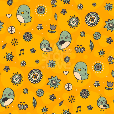 Entspannte Vögel: Nette Vögel in einem Meer von Blumen und Musik.