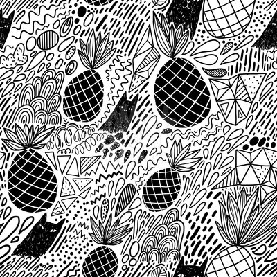 Ananas und Katzen: Muster mit hangekritzelten Ananas und Katzen.