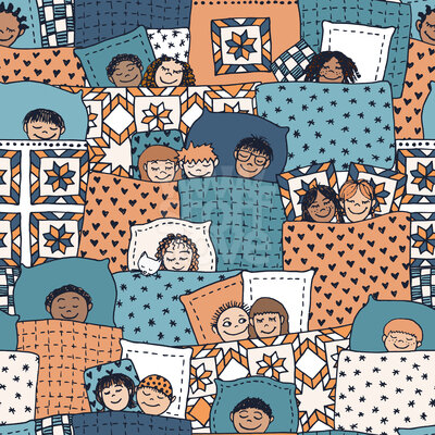 Pyjama-Party: Design mit niedlichen Doodle-Gesichtern von verschiedenen Kindern.
