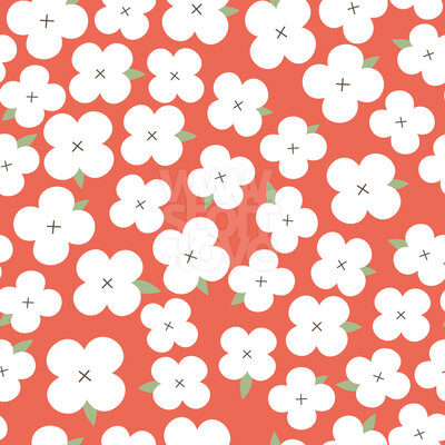 Kirschblütenmeer: Süsses Design mit stilisierten Kirschblüten auf orangem Hintergrund.