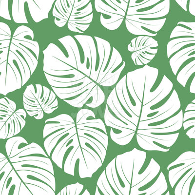 Tropisches Monstera Blatt: Nahtloser Hintergrund mit Blättern einer großen tropischen Pflanze.
