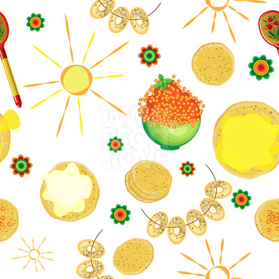 Pfannkuchen Umgeben Von Dekorativen Sonnen: Leckere Pfannkuchen mit Kaviar Honig und Sauerrahm.