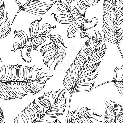 Alternde Federn: Grafisch gezeichnete Federn, in einem Muster mit einer nahtlosen Wiederholung.