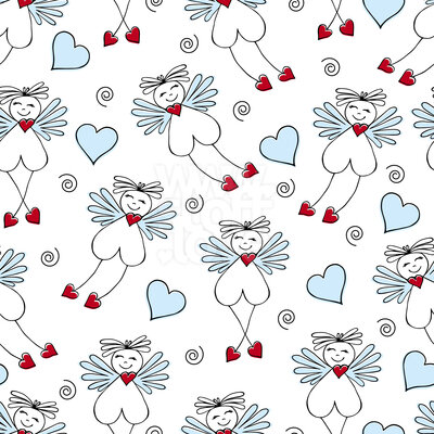 Feen Mit Herzen: Lustiges nahtloses Handzeichnungsmuster mit netten Feen.