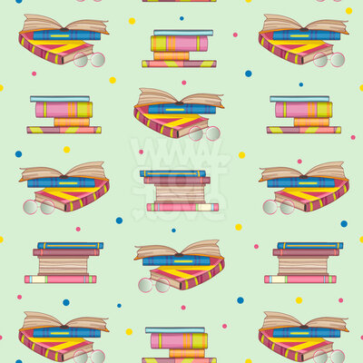 Bücher: Nahtloses Musterdesign mit verstreuten Bücherstapeln und Punkten.