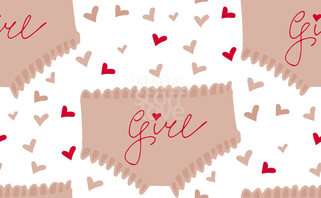 Höschen: Nahtloses Girl Power-Muster mit verstreuten Höschen und Herzen.