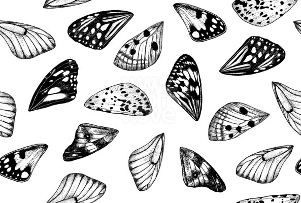 Schmetterlingsflügel: Nahtloses einfarbiges Musterdesign mit verstreuten Schmetterlingsflügeln.