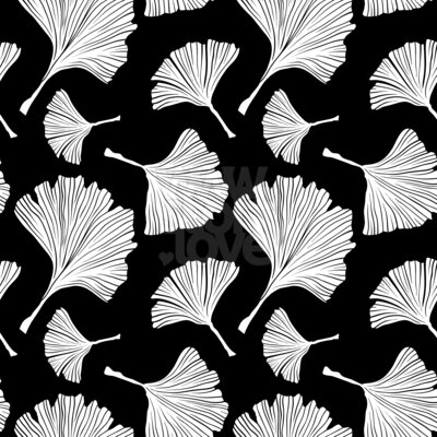 Monochrome Ginkgoblätter: Nahtloses monochromes Musterdesign mit verstreuten Ginkgoblättern.