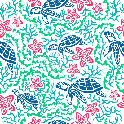 Schildkröten Und Seesterne: Eine Neuinterpretation des klassischen Unterwasser-Musterdesigns mit Schildkröten und Seesternen.