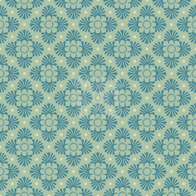 Stilisierte Blüte: Stilisiertes Blumen-Design mit Punkten in verschiedenen Petrol-Tönen.