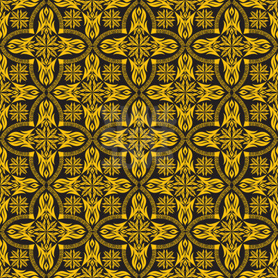 Ethno Crosses: Gelbe Tribal Ornamente auf dunklem Hintergrund.