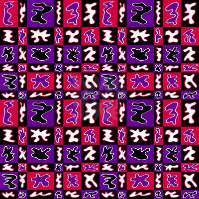 Jazzy Fleck: Von Henry Matisse inspiriertes, abstraktes Design in Pink, Scharz, Weiss und Violett.