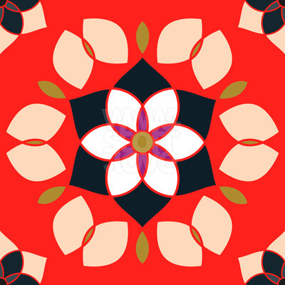 Flor De Lotto: Blumen Ornament, das an portugiesische Fliesen aus dem Achtzehnten Jahrhundert erinnert.